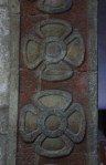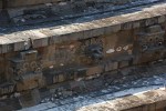 Inside is an interesting mix of original artifacts and reconstruction. The stones around the top of the building appear original. The paint below them and the very square columns are reconstructed:
