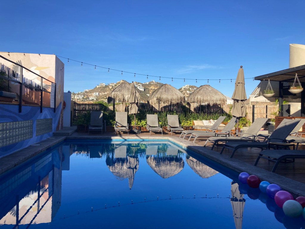 After Mexico City, we went to Cabo San Lucas, a place we had never been before. We stayed at an adults-only hostel. It should have been obvious that “adults” would mostly mean just barely (though we were far from the oldest guests). It was an experience, but had a nice pool area. Even better when the DJ wasn’t there.